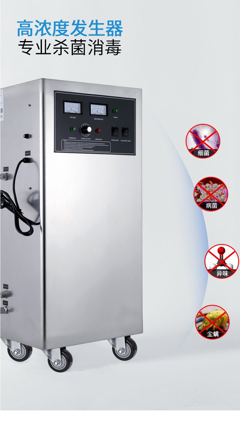 佳環(huán)HY-003-30A,30克水冷型臭氧發(fā)生器 配置:30克線路板,30克發(fā)生管,氣泵,電壓表,電流表,濃度調(diào)節(jié)旋鈕,電源指示燈,臭氧指示燈,電源開關,電壓指示燈,精密濾水系統(tǒng)、冷凝系統(tǒng)、干燥系統(tǒng)、流量計,臭氧輸出口,冷卻水進出水口。