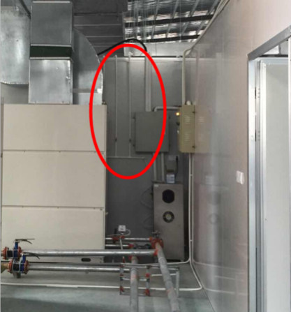 機器放置在房間外,在中央空調排風管的送風口處開一個小孔,臭氧氣體從小孔通入排風管,然后經過每個房間的風口均勻分布到每個房間中。